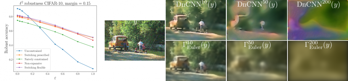 We have been very interested in structure-preserving deep learning over the past few years, with one of the main applications being the design of robust neural networks. State-of-the-art neural networks have repeatedly been shown to suffer from a lack of robustness, for example in the form of adversarial examples in image classification: images that have been imperceptibly perturbed so as to fool image classifiers. This is the cause of significant concern in safety-critical applications such as medical imaging. One of the main threads of research within structure-preserving deep learning is concerned with the connections between neural networks and dynamical systems, specifically the design of neural network architectures based on the appropriate discretisation of parametrised continuous dynamical systems that have desirable stability properties. In this project, we are further pursuing this direction: applying this idea to the problem of robust image classification, generalising it to robust classification on other forms of data such as graph data, and applying it to Plug-and-Play image reconstruction with provable guarantees.