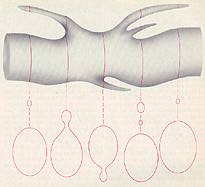 or like a yo-yo (lower diagram). One side of the cut can be given a full