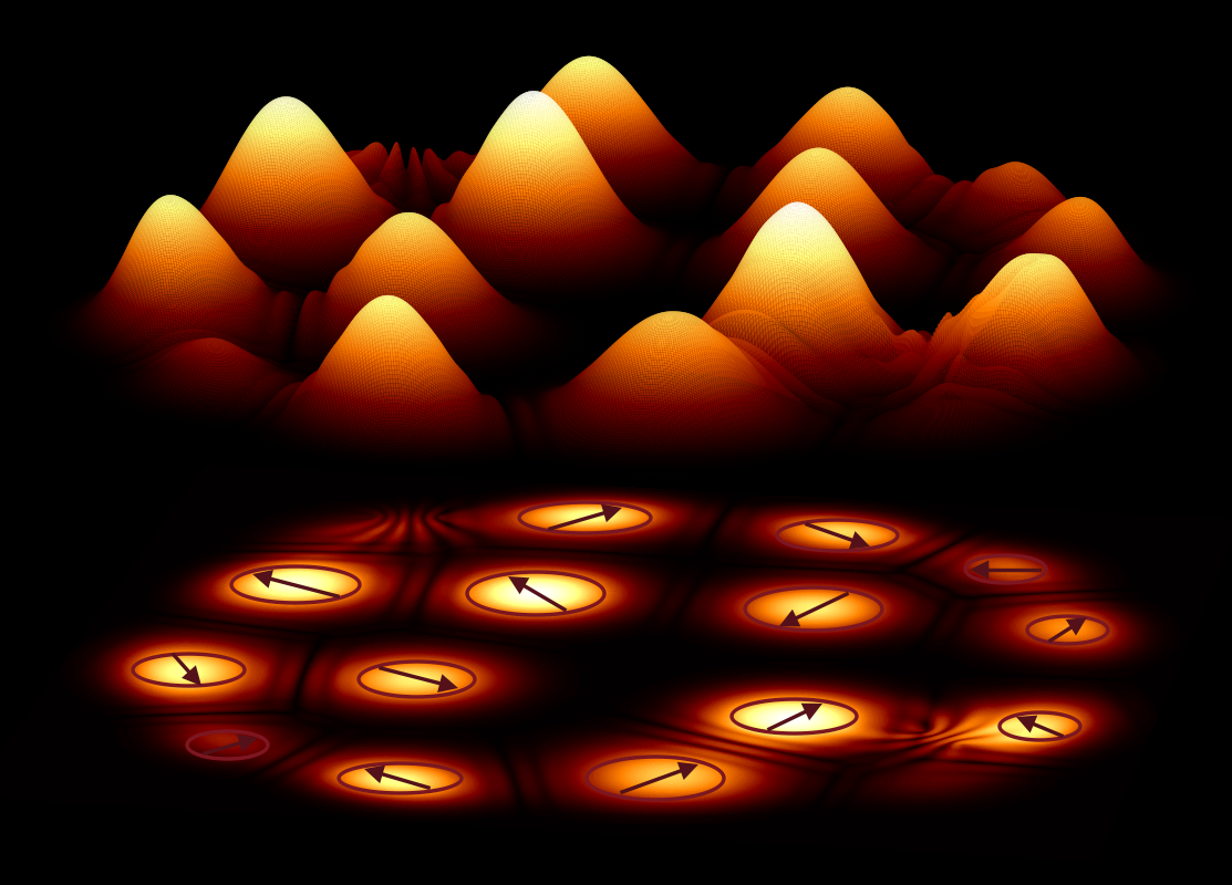 the exchange and magnetic dipolar interactions. We are interested in modelling these condensates and understanding the structure of the ground state and excitations such as vortices and sound waves. (Image at left is adapted from P. Nowik-Boltyk, O. Dzyapko, V. E. Demidov, N.G. Berloff and S. O. Demokritov "Doubly degenerate Bose-Einstein condensate of magnons: spatially non-uniform