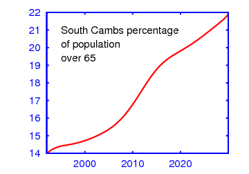 The elderly population of Cambridgeshire will increase much more rapidly than the national average, because of our economic success - the proportion of over 65s could nearly double by 2031 and existing housing can accommodate only 75% of them.